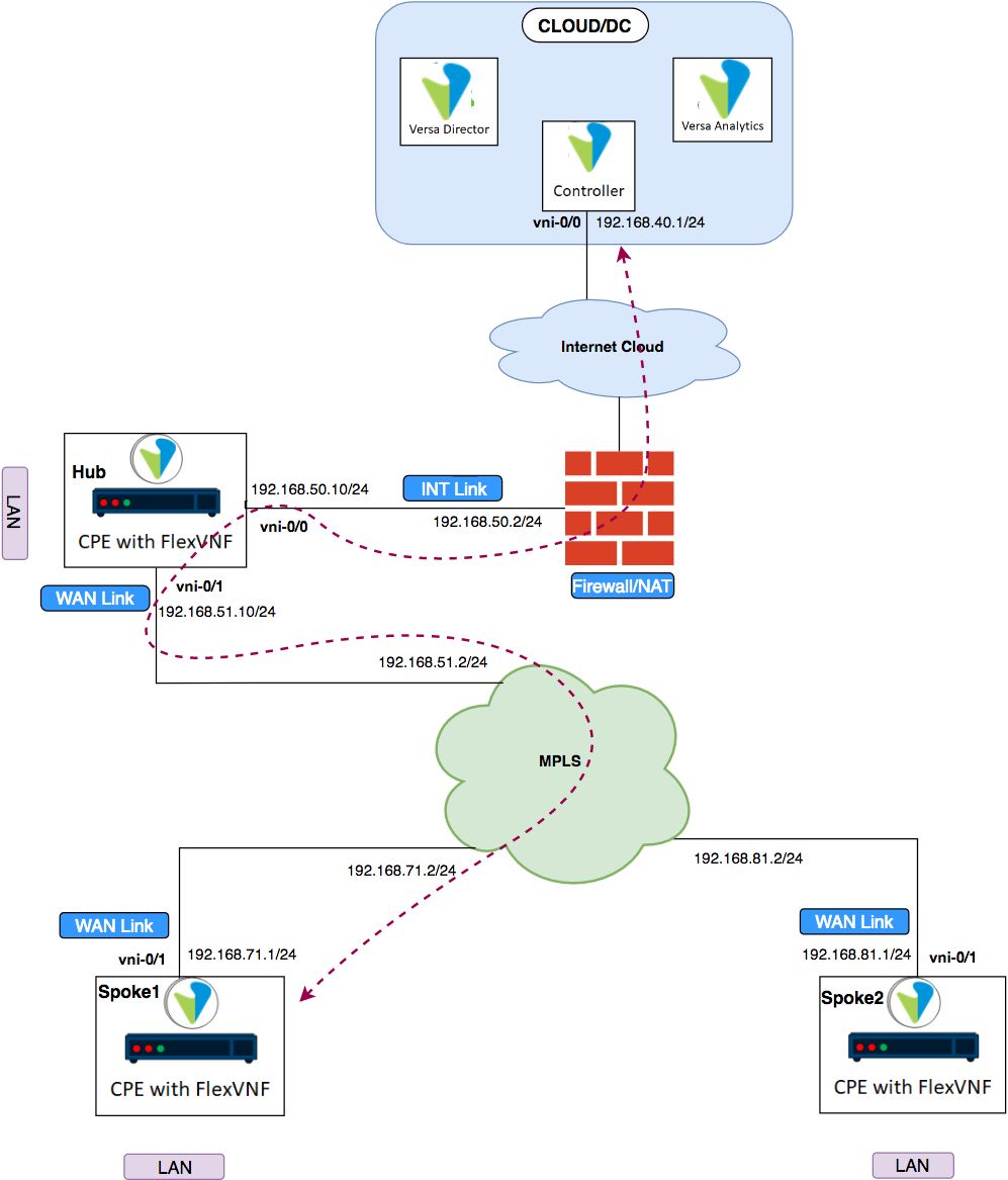 How to stage a branch, where Versa SDWAN controller is behind Hub in different traffic domain.