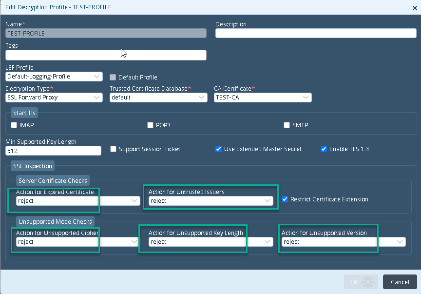 To block psiphon in non-vpn we need to configure SSL decryption profile for HTTPS and with below checks.