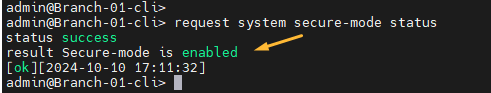Note: Please ensure the secure-mode is disabled before onboarding.In a out-of-box unit secure-mode is disabled by default. To check the Secure mode status #From CLI request system secure-mode status