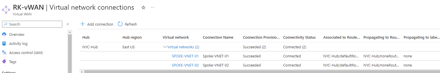 Attach Spoke-VNET-01 and Spoke-VNET-02 to NYC-Hub.