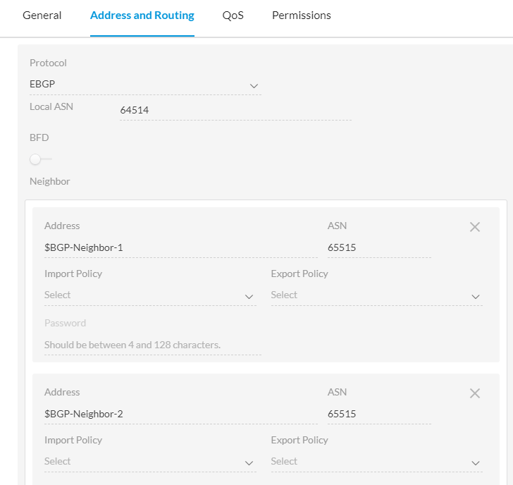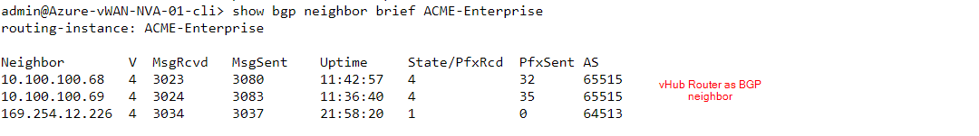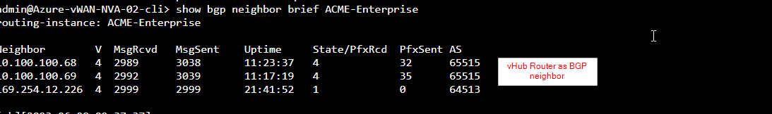 Enable BGP on LAN interface. This is the BGP with vWAN routing service (Virtual Hub router). Microsoft always uses AS 65515. Neighbor IP is vWAN hub router IP. So, there will be a BGP on LAN side with vWAN hub router.