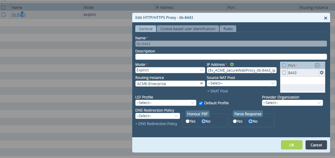 Probes will be originated from ILB IP 168.63.129.16 on port 8443. We enabled explicit web proxy on VOS on port 8443 to open the port for probes.