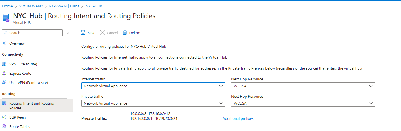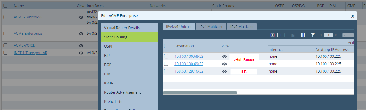 NOTE: Make sure there is a static route in LAN-VR to reach vHub Router and ILB (Internal Load balancer). Nexthop will be the first IP in subnet.