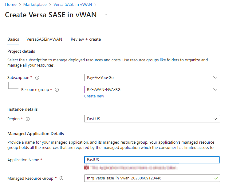 When we deploy Versa in vWAN, it creates a managed resource group where versa application will be deployed. Versa is deployed as the managed application within vWAN hub similar to Azure firewall within Microsoft.