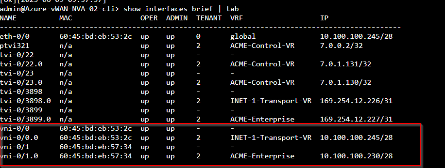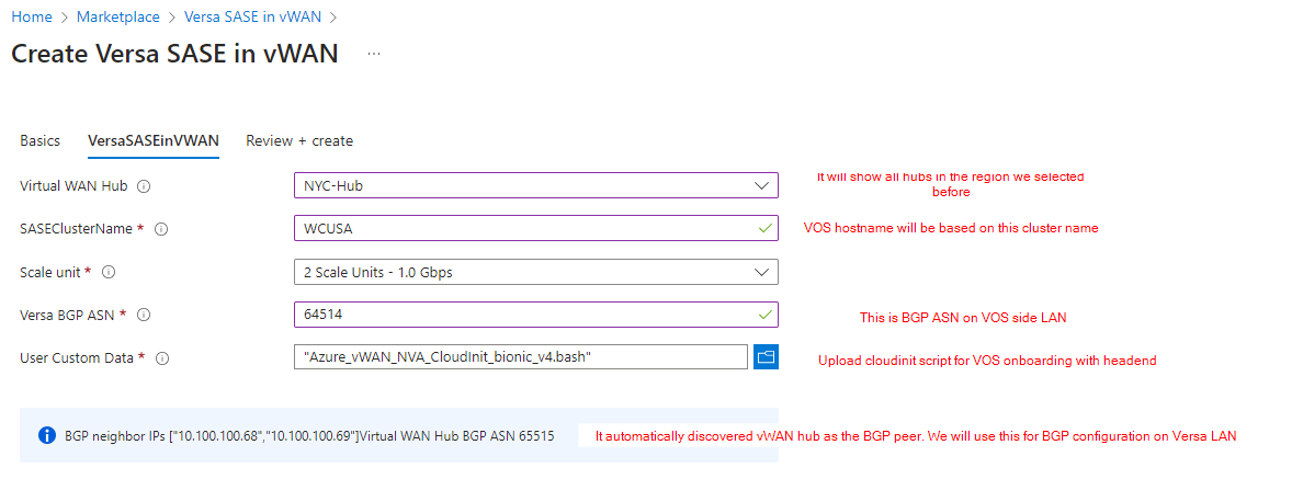 For the deployment with the out-of-band management interface (eth0), use the following cloud init script -Azure_vWAN_NVA_CloudInit_bionic_v1-3NICs-withoutExpressRoute.bash.