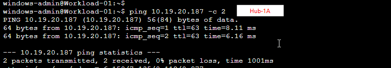 Ping from Spoke-VNET-01 workstation to Hub-1A