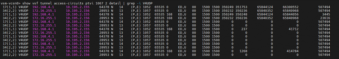 show vsf tunnel access-circuits ptvi <ptvi-id> <tenant-id> detail | grep -i V4UDP >>>>>To get access circuit which is having issue