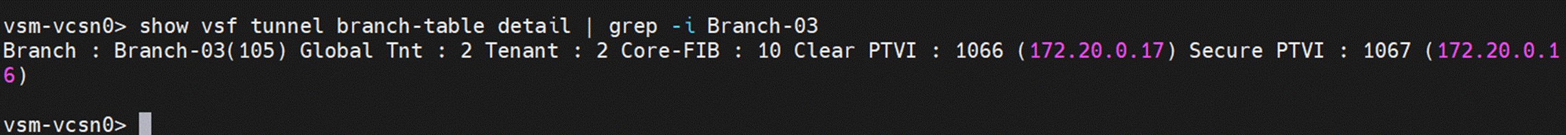 show vsf tunnel branch-table detail | grep -i <remote-branch-name> >>>>>>>>>> To get the secure tunnel ptvi id