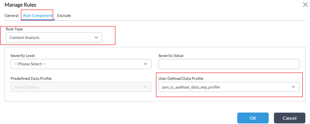 set orgs org-services Tenant1 security profiles dlp dlp-profiles pan_adhaar_cc rules pan_adhaar_cc_dlp_rule match content-analysis user defined-data-profile pan_cc_aadhaar_data_exp_profile