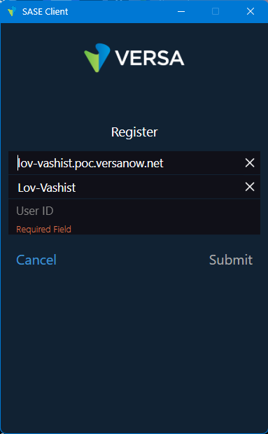 - DOS: msiexec /i "VersaSASE_Custom.msi"