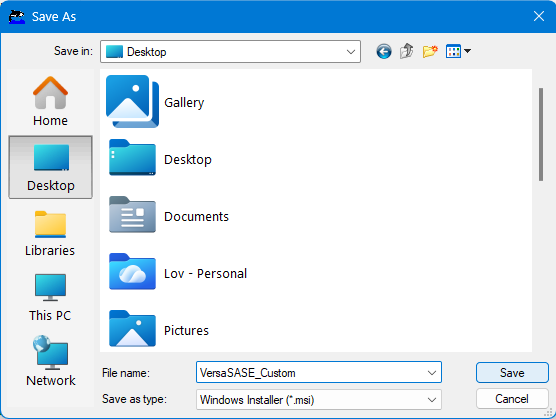 - Select Save Transformed as and save it with a new name, for ex. VersaSASE_Custom.msi.