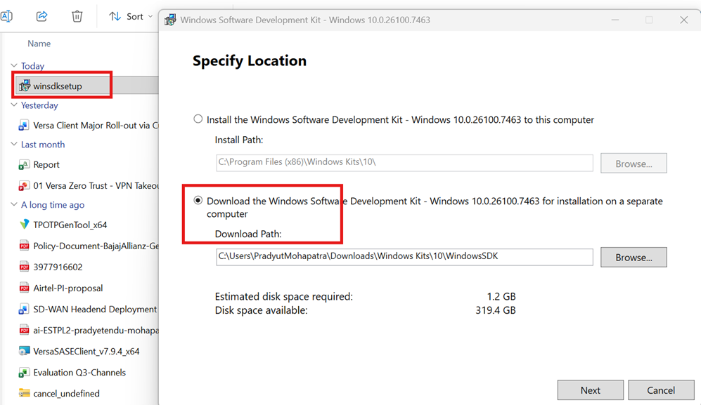 You will see a new folder “Windows Kits” inside download folder. Go to Installers and run “Orca-x86_en-us”