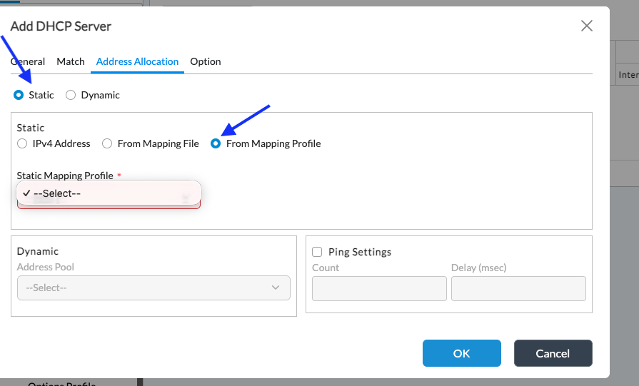 Address Allocation: Static → From Mapping Profile