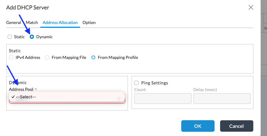 Address Allocation: Dynamic → Address Pool